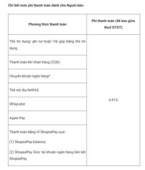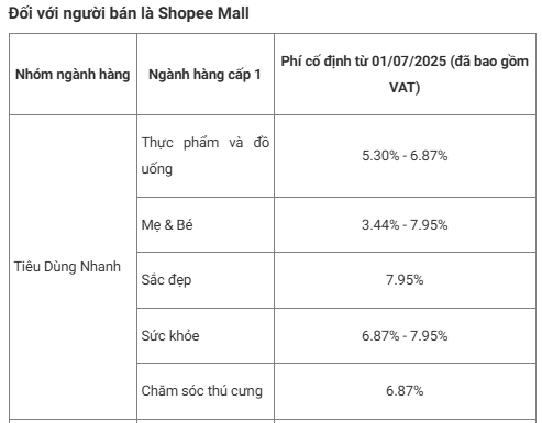 Từ ngày 01/07/2025, Shopee điều chỉnh mức phí phí cố định (đã bao gồm thuế GTGT) như sau: