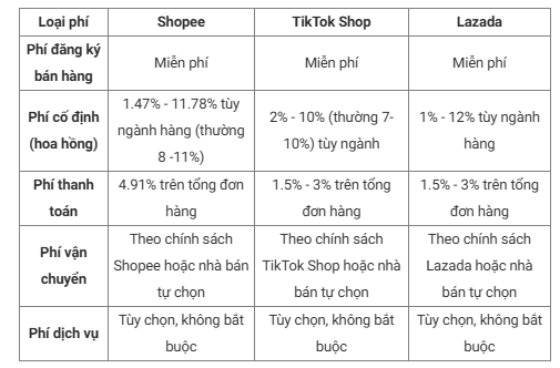 Sàn thương mại điện tử (TMĐT) là kênh bán rất phổ biến và mang lại nguồn doanh thu vô cùng lớn cho các chủ shop chuyên bán online cũng như các chủ shop bán hàng đa kênh. Tất nhiên, điều các chủ shop rất quan tâm khi lựa chọn mở gian hàng trên bất cứ sàn nào đó là phí bán hàng là bao nhiêu, có bao nhiêu khoản phí phải trả cho mỗi đơn hàng thành công.